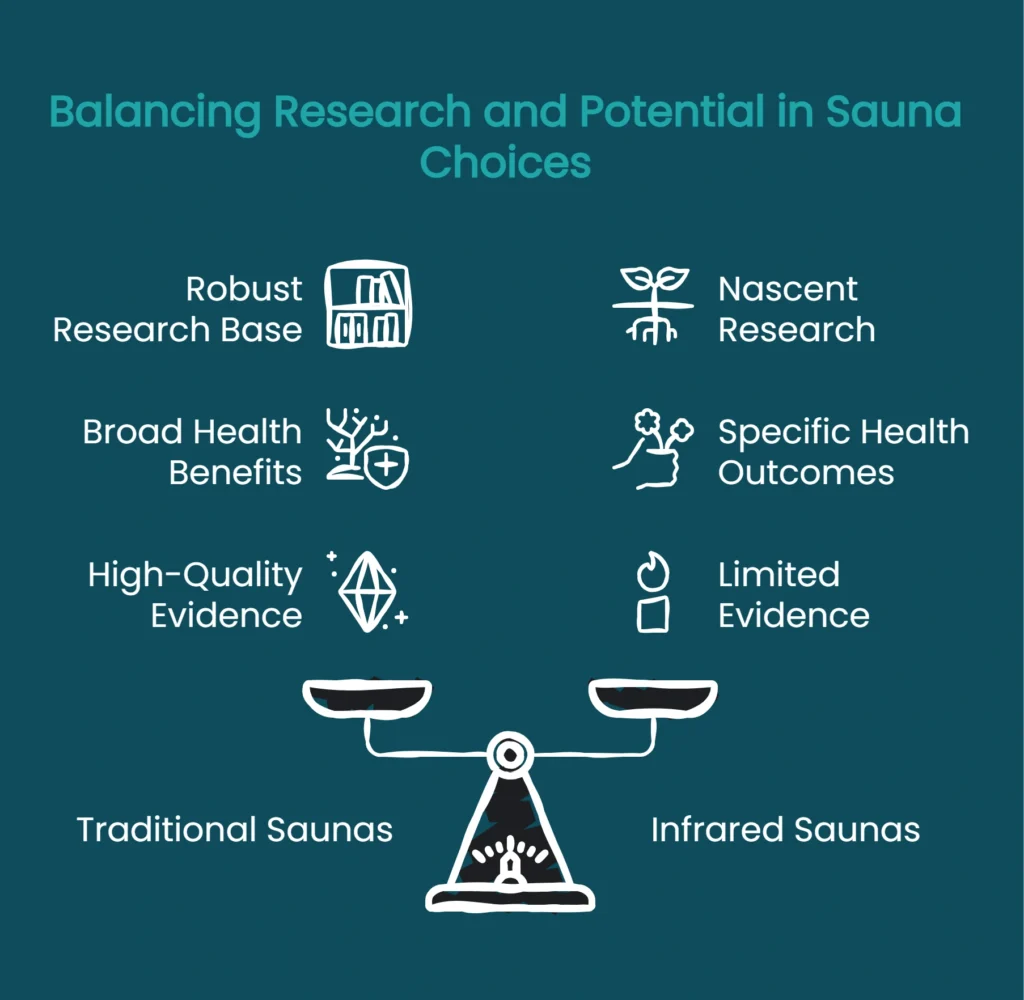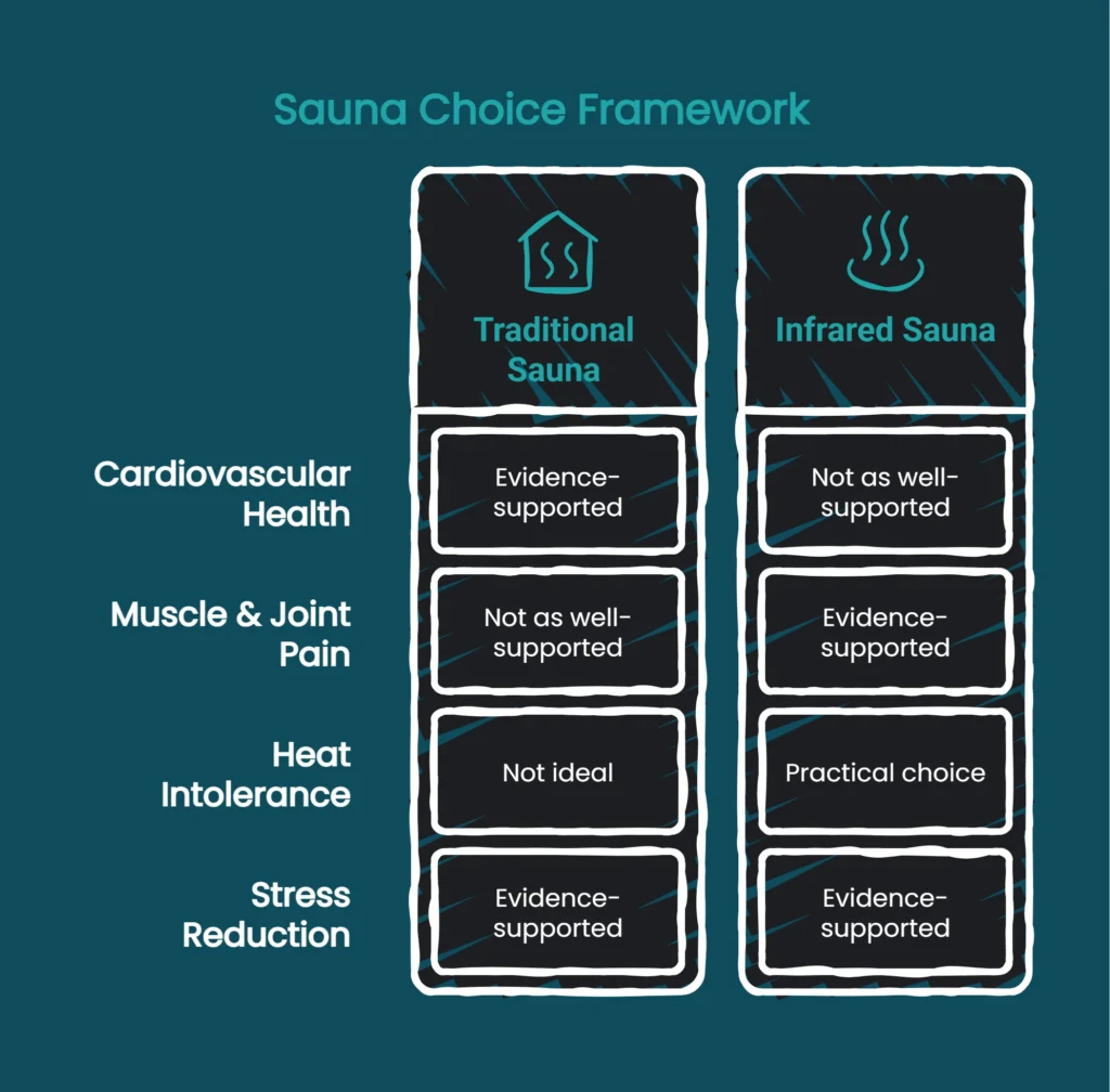 Instead of asking “Which sauna is better?” a more productive question is “Which sauna aligns with my specific goals and the evidence supporting those outcomes?”