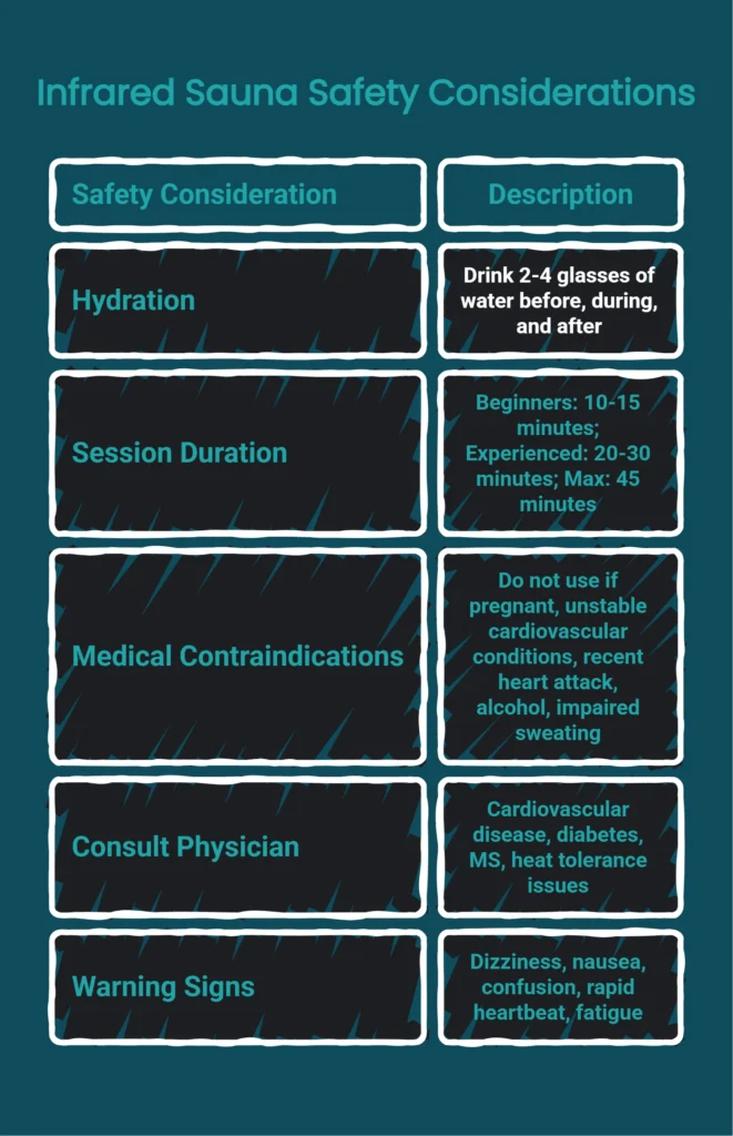 Medical Disclaimer: This article provides educational information about infrared sauna safety and is not intended as medical advice. The content should not be used to diagnose, treat, cure, or prevent any medical condition. Individual responses to heat therapy vary based on health status, medications, and underlying conditions. Always consult with a qualified healthcare provider before beginning infrared sauna use, especially if you have cardiovascular disease, are pregnant, take prescription medications, or have any chronic health conditions. The information presented here is for educational purposes only and does not replace professional medical guidance.